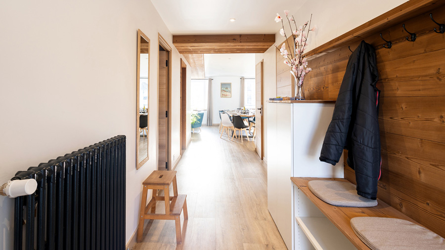 - Chauffage par chaudière à granulés alimentant d’authentiques radiateurs en fonte pour une chaleur douce