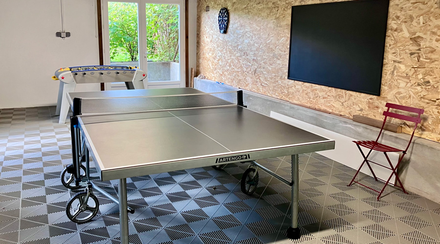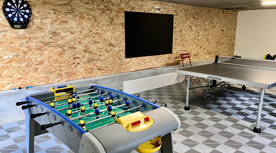 - Espace salle de jeux : baby-foot, ping-pong, fléchettes