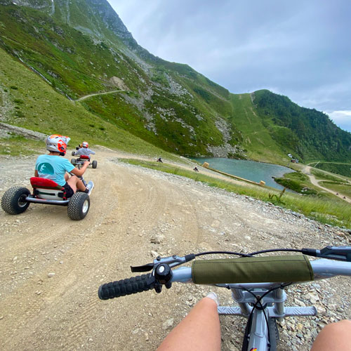 Embarquez à bord du télésiège Chamois pour rejoindre les hauteurs de la station à 2000m d’altitude, puis installez-vous confortablement dans votre cart tout-terrain à trois roues. Sans moteur mais avec une excellente tenue de route et de puissants freins hydrauliques, le MountainCart vous promet une descente grisante, entre virages, dérapage, vitesse et panoramas à couper le souffle. Sur plus de 4,5km de piste et 650m de dénivelé, venez découvrir cette nouvelle activité 2025 !